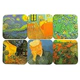 Six Dessous de Verre de haute qualité, en cadeau ou en souvenir de France. Motif : Peintures de Van Gogh. Matière : 100% liège. Dimensions : 9,5 x 9,5cm.